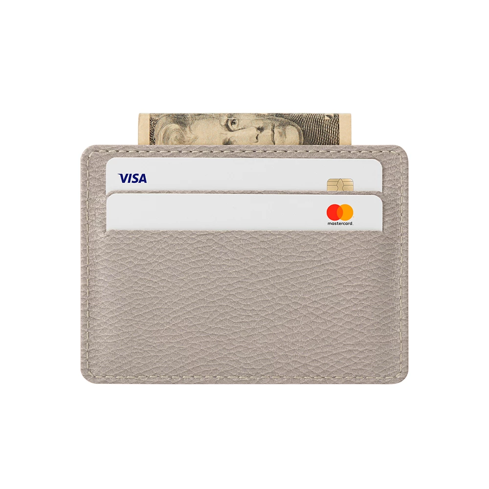 Everyday Card Case - 4 Cards Light Taupe  - Pebbled Leather