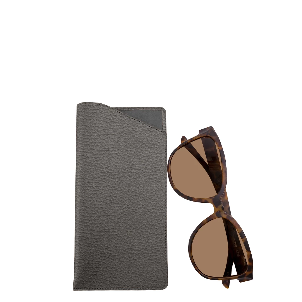 Large eyeglass case Mouse-Grey  - Pebbled Leather