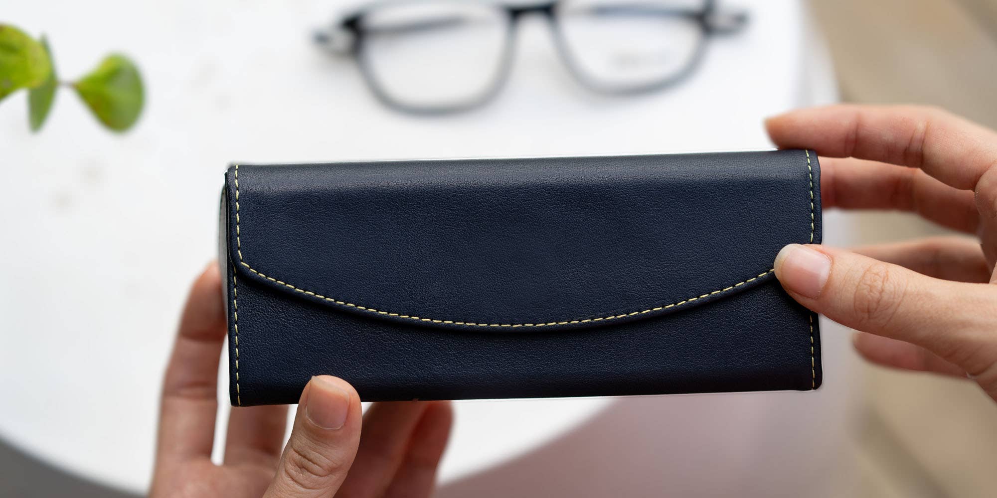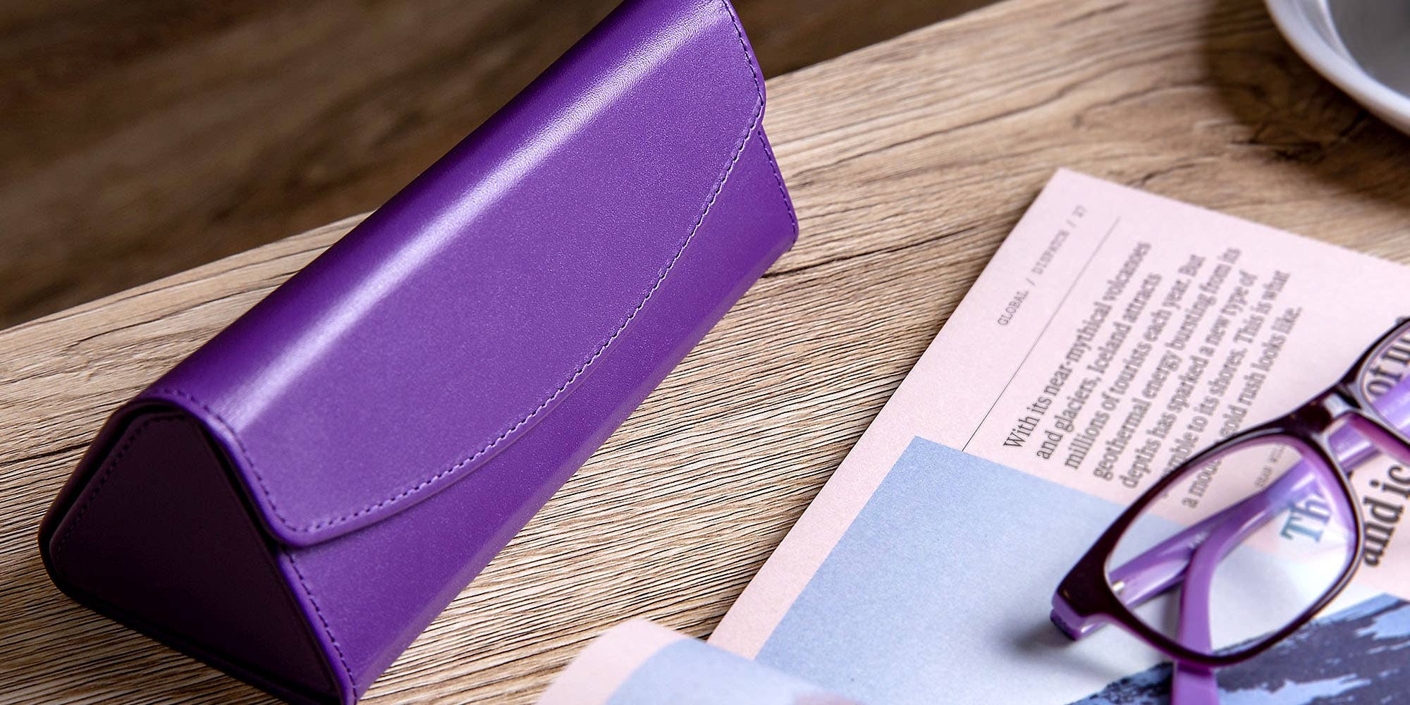A unique triangular glasses case in leather that folds up perfectly when you are using your eyeglass. This luxury leather sunglasses or eyeglasses case is great to carry along when you are on the move. You may even opt to store your essentials or valuables instead. It snaps shut thanks to a magnet closure, and keeps your accessories safe. Get a unique engraving on the leather surface for an absolutely stunning gift for him or for her.