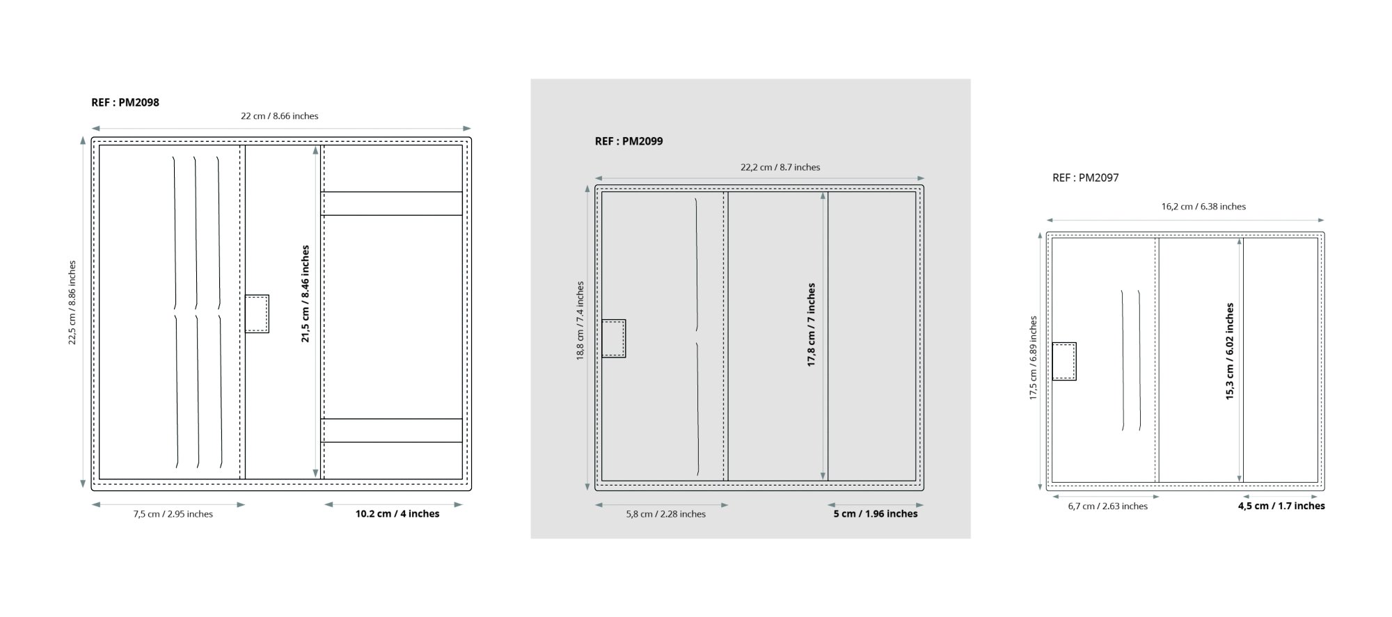 Keep everything you need handy with one of the finest chequebook covers made in authentic full grain leather. On one side, you can slip the hard cover of your chequebook in a flat plastic band. On the other side of the chequebook wallet, there are 2 slots for credit cards (or business cards of the same dimensions) cut out from a flat leather pocket for notes or other documents. To ensure that you use the correct size of check book, refer to the last picture of this product page for the size guide.