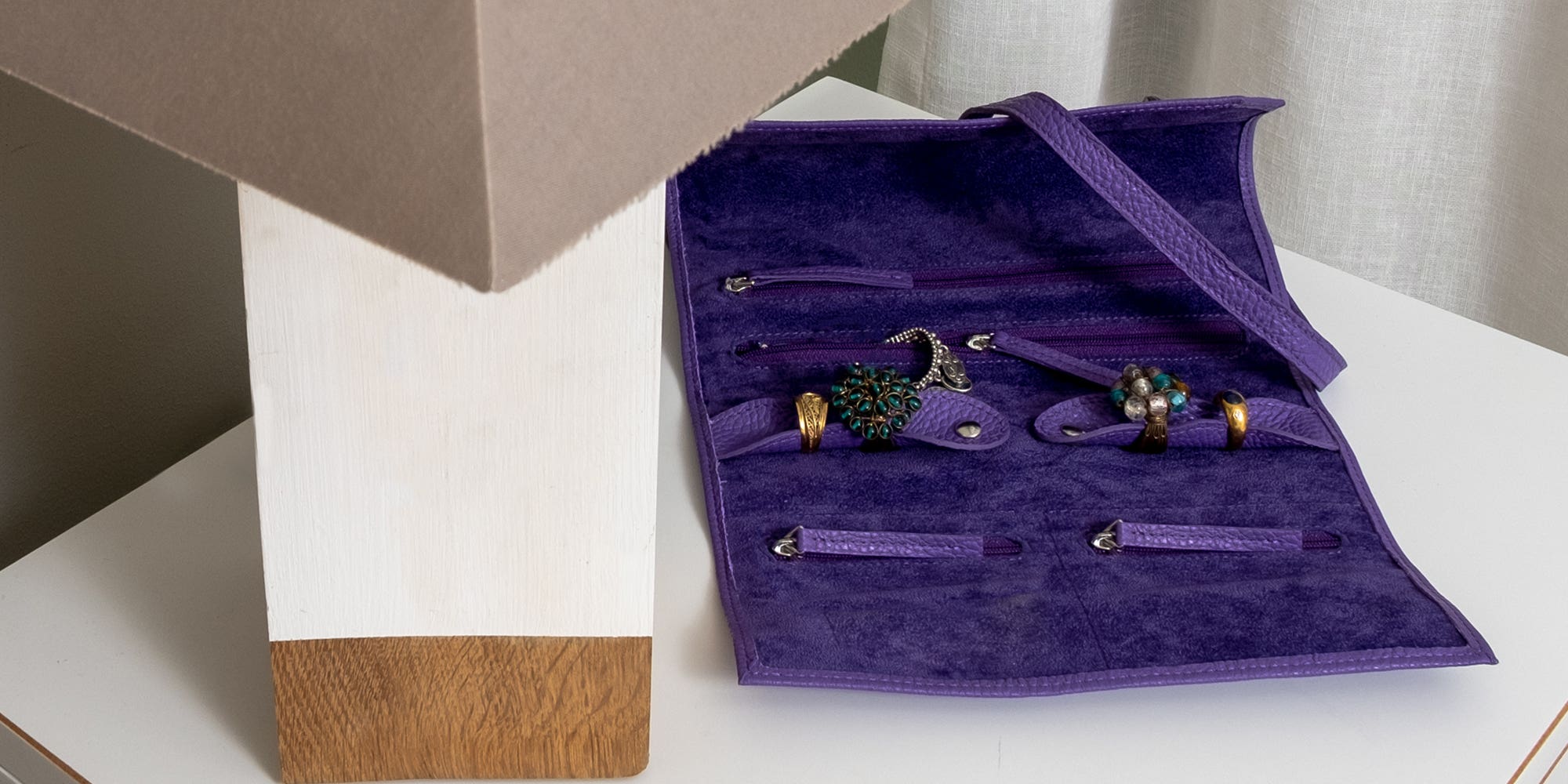 Stop losing your favourite jewelries and accessories any more with the new leather jewellery roll pouch by Lucrin. With dedicated compartments for your necklaces, earrings and even watches, this pouch allows a complete optimisation of space in your luggage or handbag. Four pockets have been designed for a perfect organisation. Your rings also fit in perfectly thanks to the two bands held by press studs. The microfibre interior protects your belongings from scuffs and dust. Finally, a leather lace binds everything securely so you do not lose anything.
