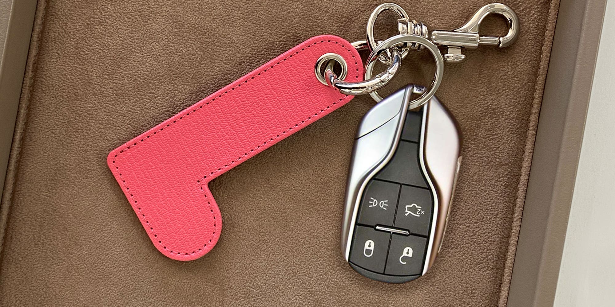 Oversized keychain consisting of an L-shaped leather cut-out, 2 rings and a high-end carabiner hooked through an eyelet. This key holder is ideal to keep all your keys and/or can be used as a trendy bag accessory, especially as it comes in many leathers and colors. Pick the one keyring that suits your bag or looks.