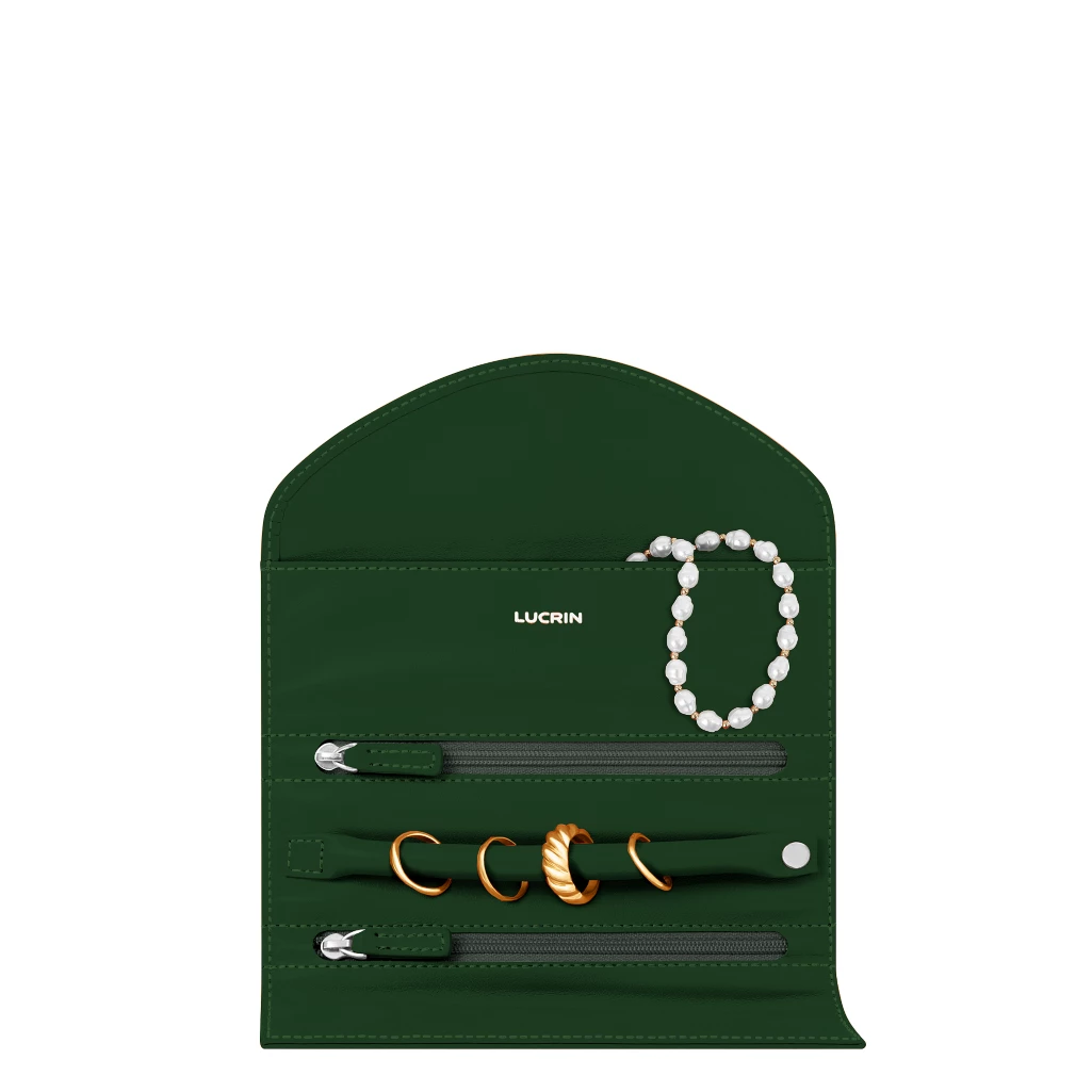 Jewelry Pouch with Snap Closure Dark Green  - Smooth Leather