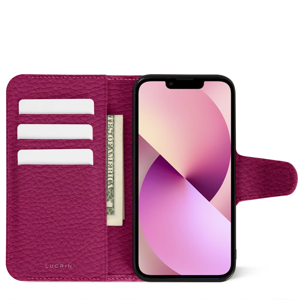 iPhone 13 Luxury Wallet Case Fuchsia  - Pebbled Leather
