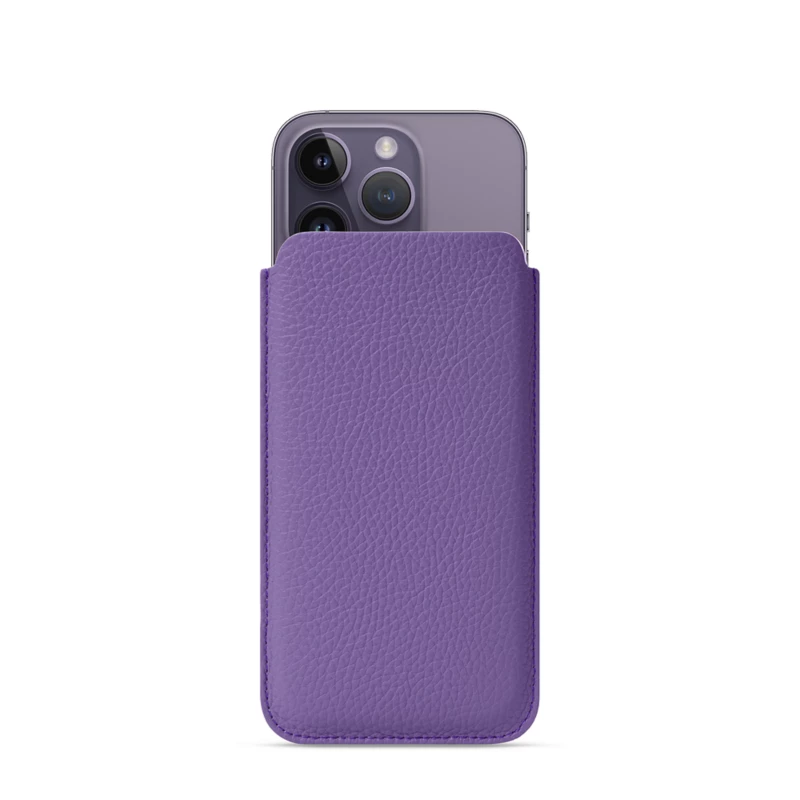 Protect your new iPhone 14 Pro with style with LUCRIN Geneva’s classic sleeve. Providing a snug fit, this classic sleeve is handcrafted in genuine luxury leather, taking up the form of your device with use. Equipped with microfiber lining, this case sleeve shields your phone from scuffs and scratches. This unique iPhone 14 Pro sleeve can be easily slipped into your pocket without feeling bulky. Supporting Magsafe charging, you can charge your new device comfortably without removing your phone from the sleeve pouch. Get a unique case by choosing the leather type, color and contrasting stitching for your sleeve. Add a beautiful engraving to stand out from the crowd.