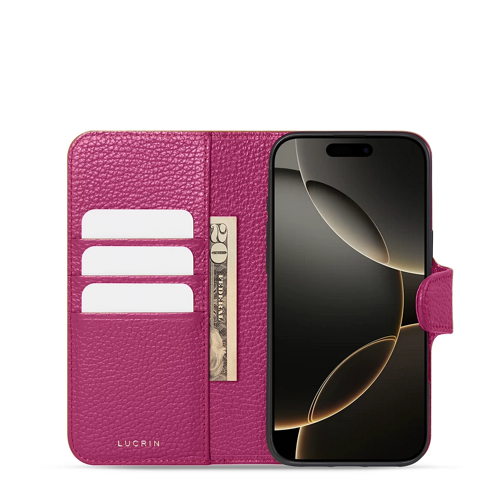 Luxury Wallet Case- iPhone 16 Pro Fuchsia  - Pebbled Leather