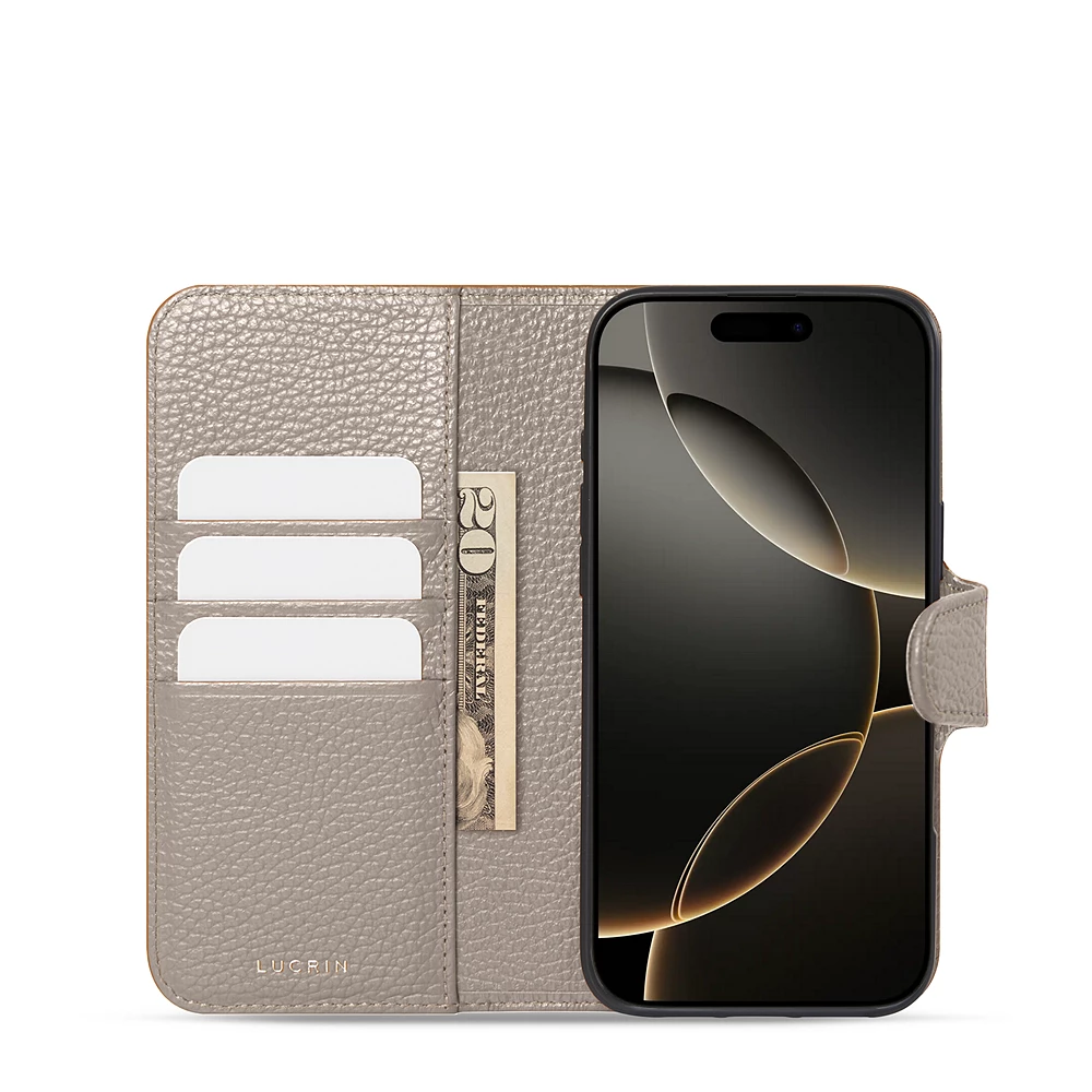 Luxury Wallet Case- iPhone 16 Pro Light Taupe  - Pebbled Leather