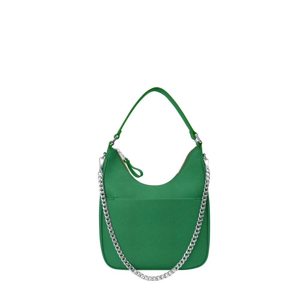 Hobo Shoulder Bag with Chain - L5 Light Green  - Pebbled Calf Leather
