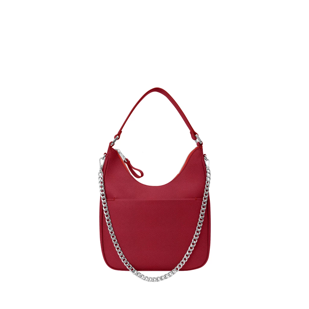 Hobo Shoulder Bag with Chain - L5 Red  - Pebbled Calf Leather
