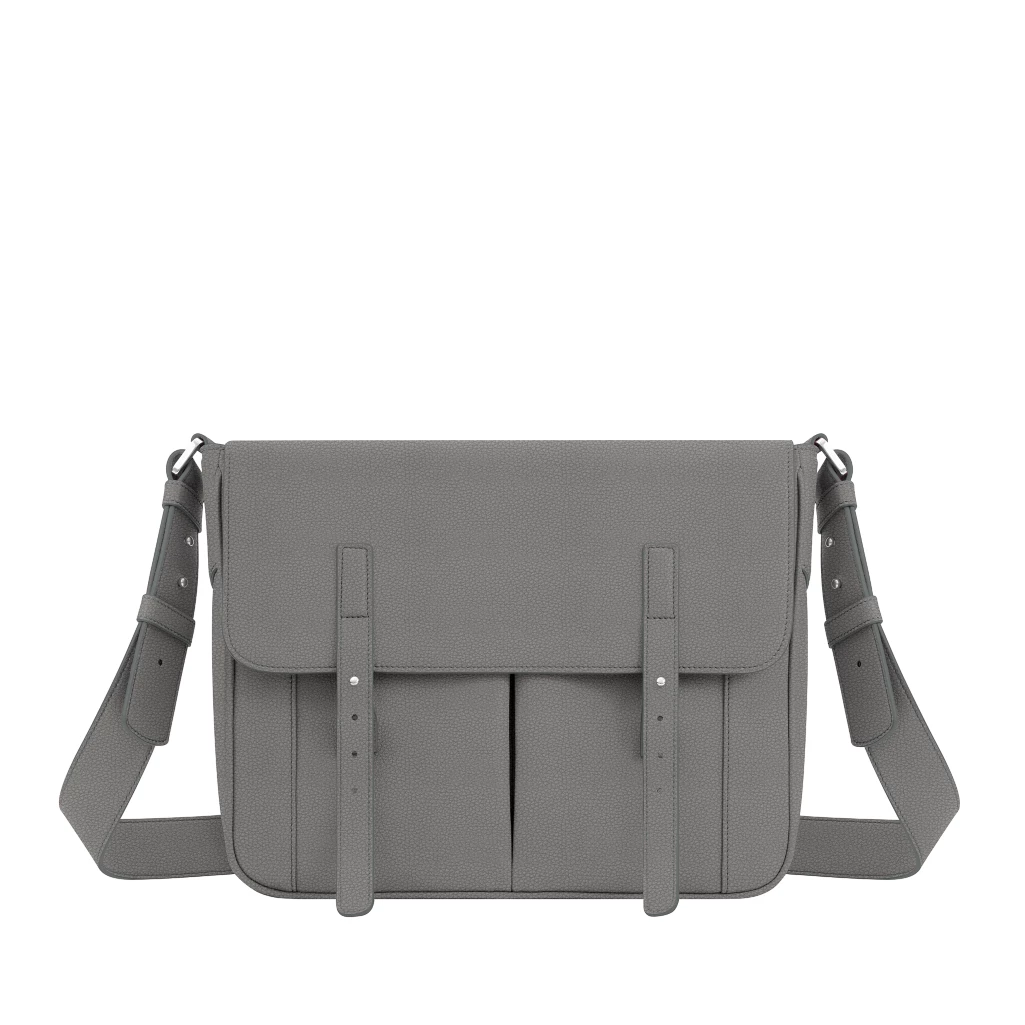 Classic Messenger Bag Mouse-Grey  - Pebbled Calf Leather