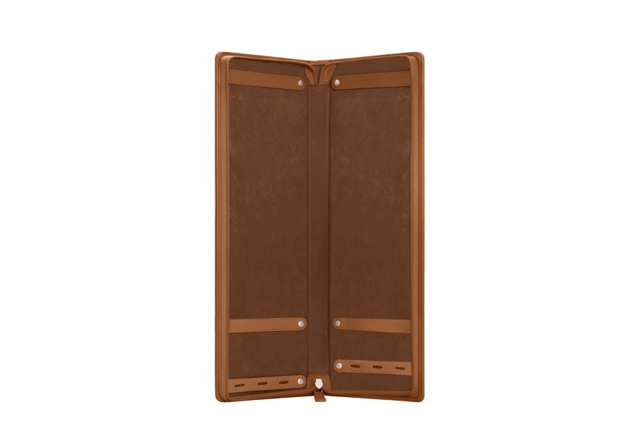 Elegant and practical, this tie holder in leather protects your ties and cuff links perfectly during your travels. An absolute best-seller specially among those who are often on the move, this leather ties holder comes with a zip closure and can carry 2 ties (1 on each side), which are held by 2 loops with snap button closure. There are also two functional leather bands with slits to fit in 3 pairs of cuff links.