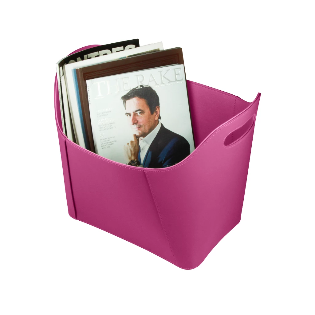 Newspapers & magazines storage basket Fuchsia  - Smooth Leather