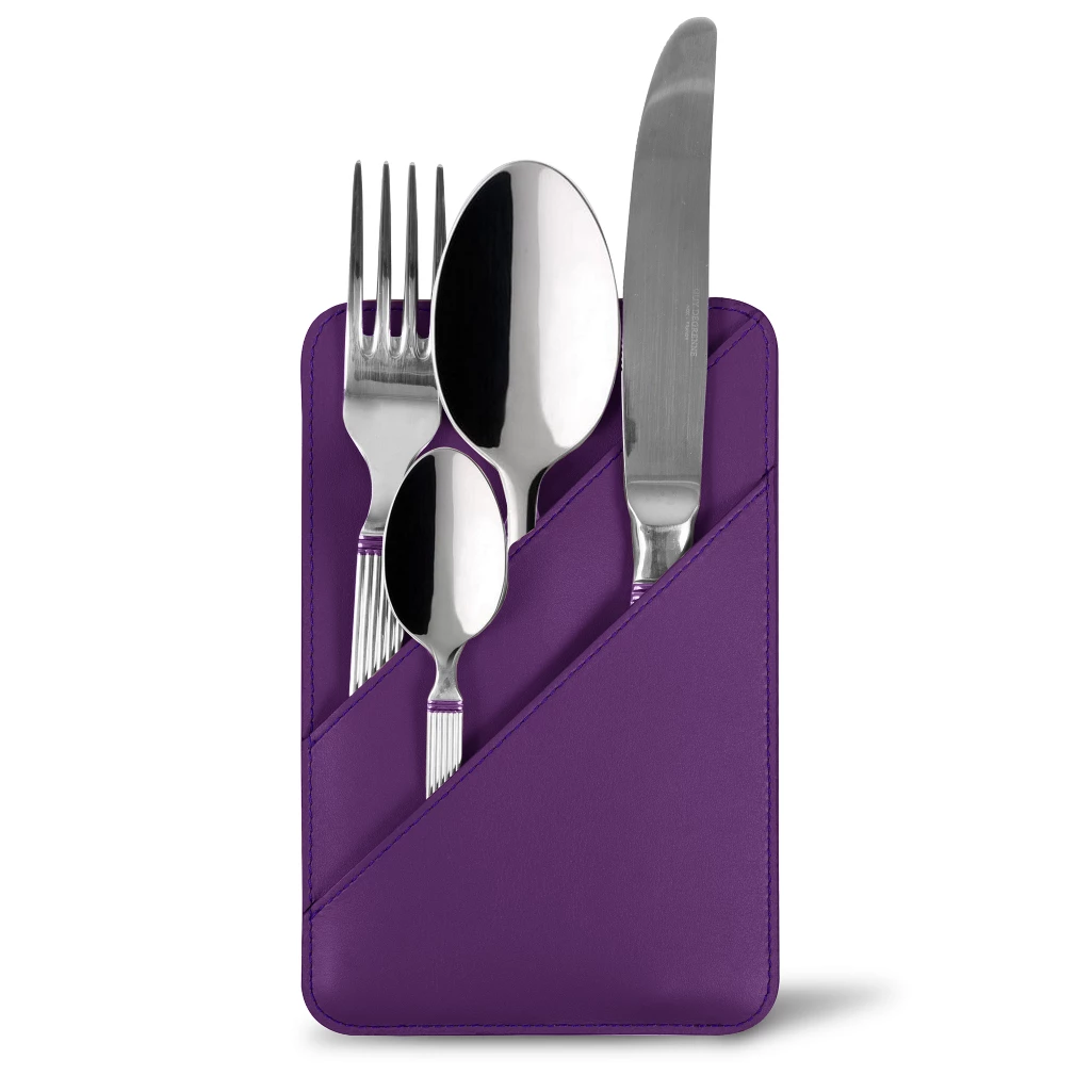 Leather cutlery pouch for those who know how to welcome guests elegantly! For a distinguished tableware experience, slip your cutlery elegantly into this natural leather case. There are 2 flat bevelled pockets for a small spoon, a knife, a fork and a tablespoon. For a truly special and refined dinner, you can engrave each guest's initials to show them how much they mean to you.