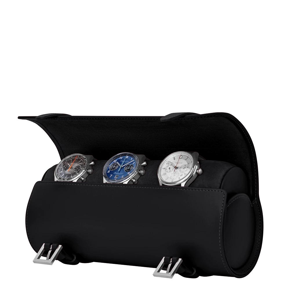 Watch Roll for 3-4 watches Black  - Smooth Leather
