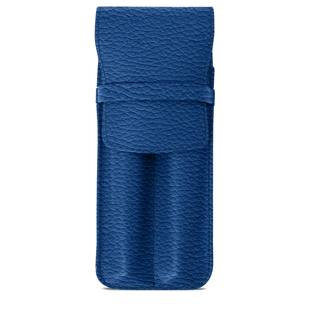 Double Pen Sleeve with Flap - Maxi Royal Blue  - Pebbled Leather