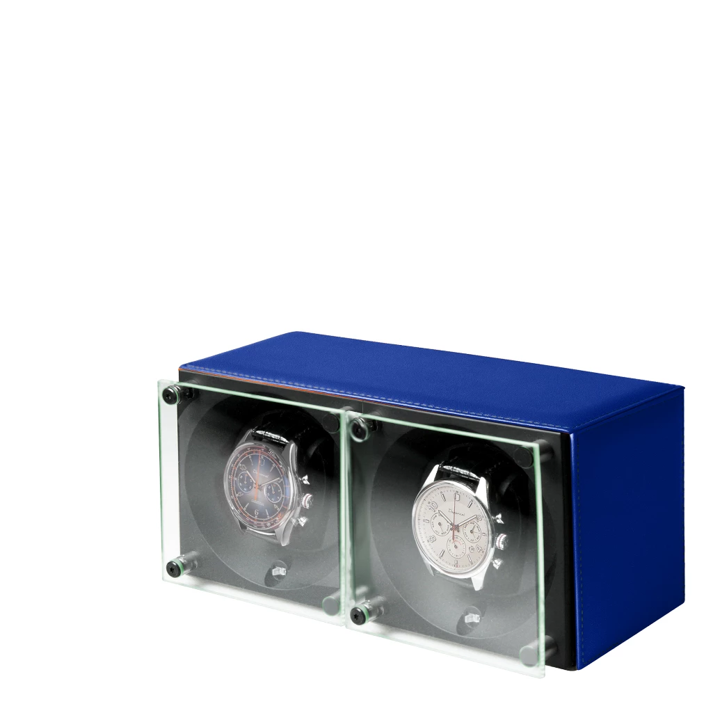 Double watch winder - SwissKubik by LUCRIN - Royal Blue - Calf Leather Royal Blue  - Smooth Calf Leather