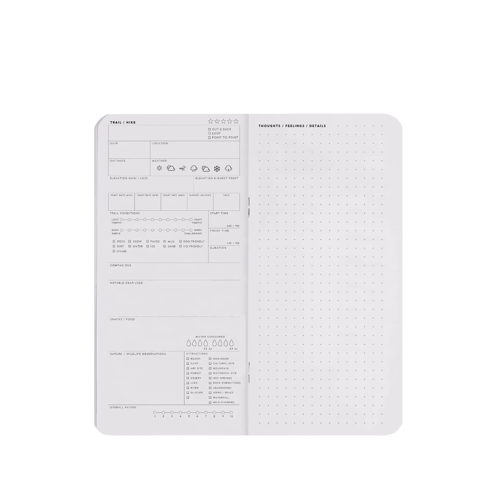 Keep your hiking memories flowing without interruption. The Hiking Logbook Refill from the Alpine Collection is designed for those who wish to extend their journey of recording trails and adventures. Sold in pairs, each set allows you to select two identical models, providing space to document up to 42 hikes. Inside, the pages are thoughtfully structured to note distances, elevations, weather, companions, wildlife, and your personal reflections — turning every hike into a vivid memory. Whether you are continuing your existing Hiking Logbook or beginning a new series of explorations, these refills ensure your stories never run out of space.