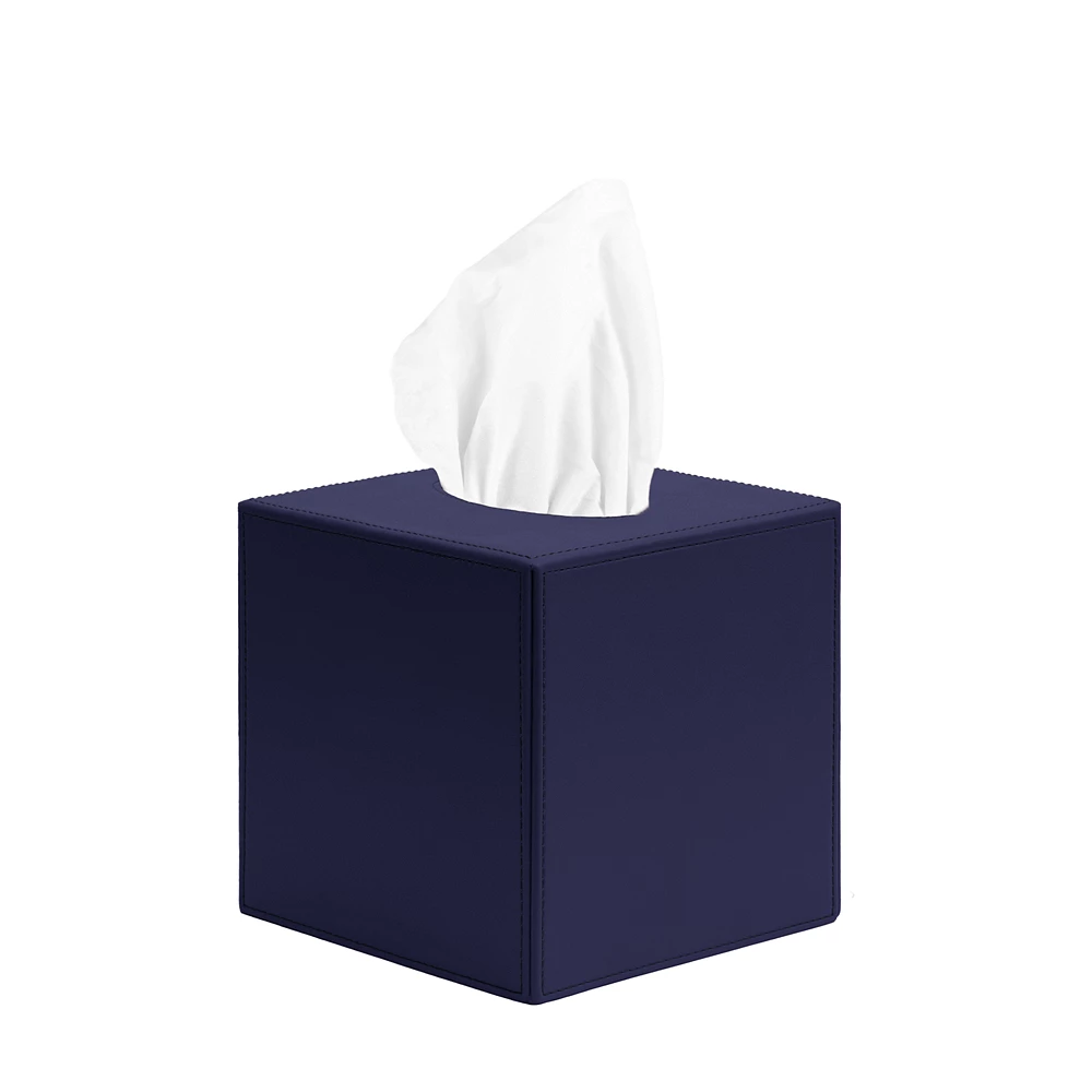 Square Tissue Box Cover Navy Blue  - Smooth Leather