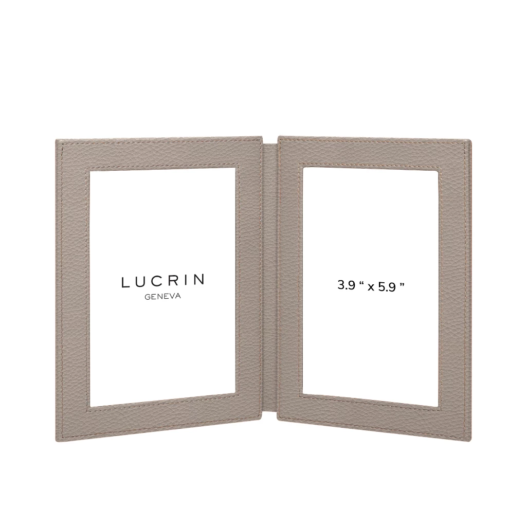 Double picture frame (5.7” x 7.5") Light Taupe  - Pebbled Leather