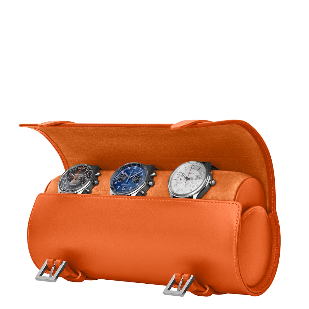 Watch Roll for 3-4 watches Orange  - Smooth Leather