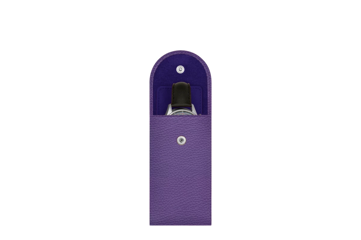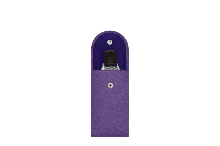 Whether you want to store your timepiece at home or take it safely on the go, this luxury leather watch case is the ideal companion. Compact and elegant, this leather watch case is designed with a soft microfiber protective separator that sits between the buckle and the back of your watch—perfect for preventing scratches when travelling. Refined in every detail, this watch case is entirely customizable: choose from a wide range of leather types and colours, and elevate it further with a personalized engraving. The flap closes securely with a hidden snap button, ensuring your watch stays protected with style wherever you are.