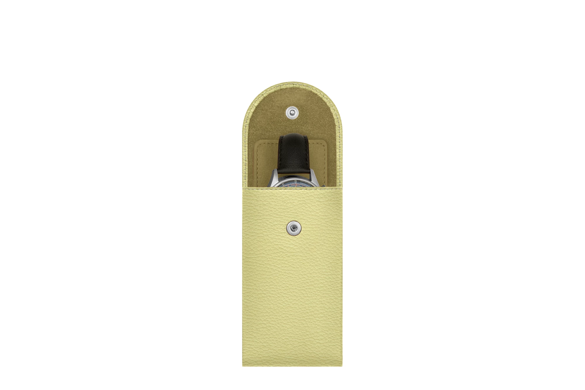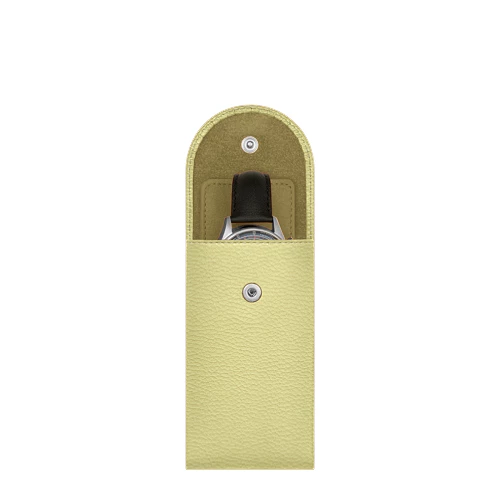 Whether you want to store your timepiece at home or take it safely on the go, this luxury leather watch case is the ideal companion. Compact and elegant, this leather watch case is designed with a soft microfiber protective separator that sits between the buckle and the back of your watch—perfect for preventing scratches when travelling. Refined in every detail, this watch case is entirely customizable: choose from a wide range of leather types and colours, and elevate it further with a personalized engraving. The flap closes securely with a hidden snap button, ensuring your watch stays protected with style wherever you are.