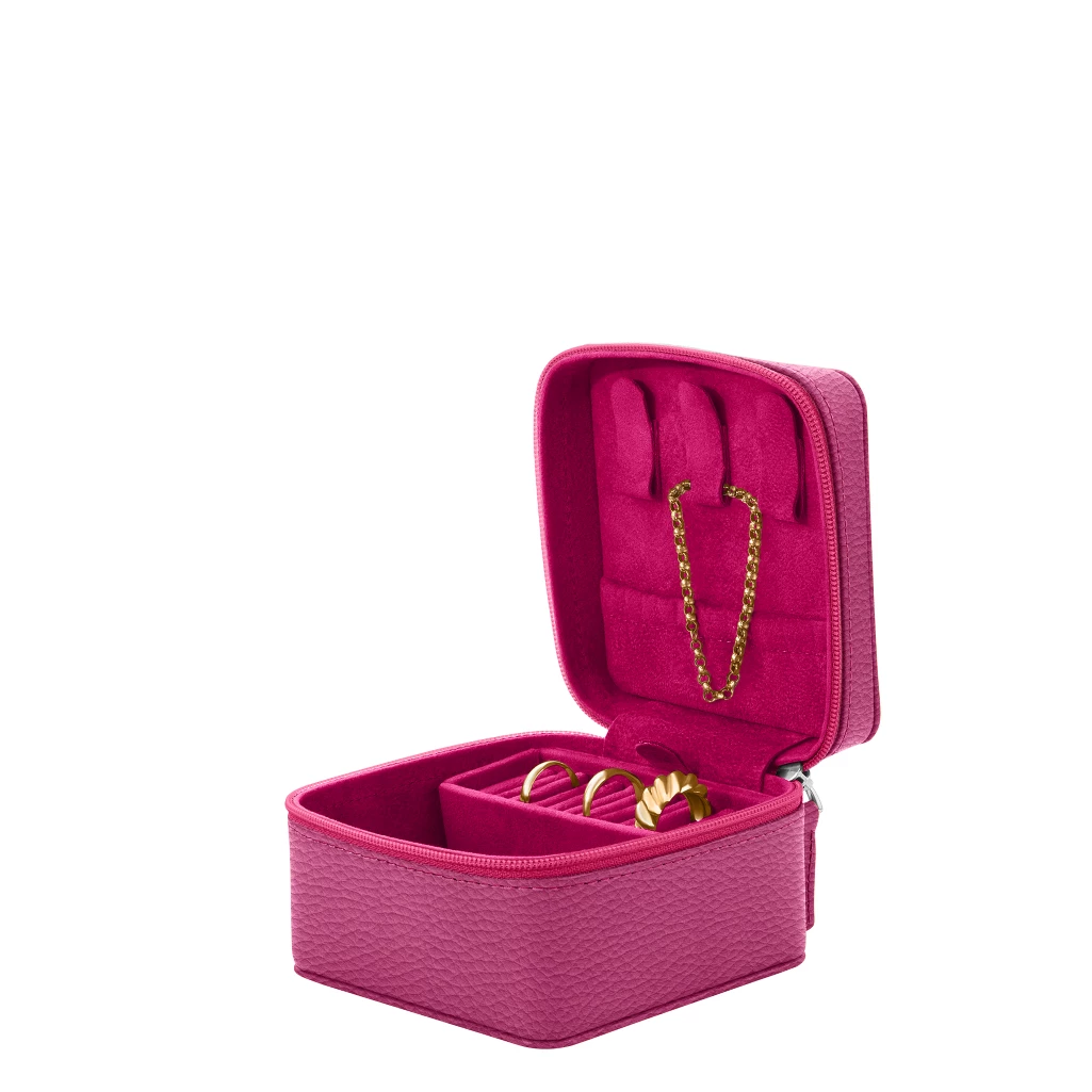 Level-up your organisation game with the LUCRIN Geneva jewelry organizer. This compact leather organizer is designed to maximize your space efficiently. Bid farewell to cluttered dressing tables and tangled accessories. With dedicated slots for earrings and rings, this organizer is perfect for on-the-go use. The lid also features an elasticated side pouch for smaller items. The zip closure ensures your jewelry stays securely in place, while the soft velvety interior prevents scratches and damage, preserving their beauty for years to come. Customize the leather color and type to match your decor, and add a monogram for a unique touch.