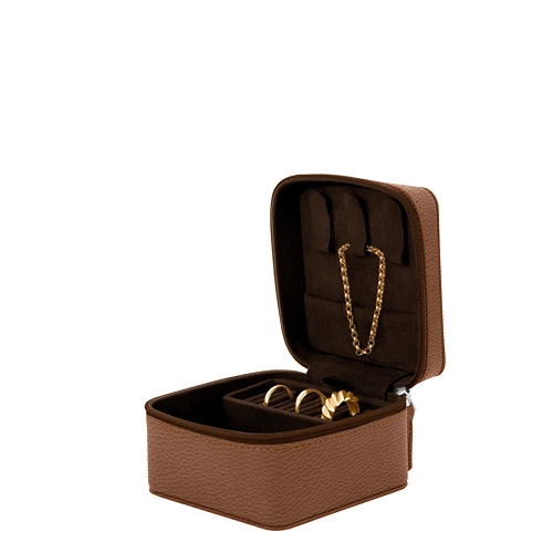 Level-up your organisation game with the LUCRIN Geneva jewelry organizer. This compact leather organizer is designed to maximize your space efficiently. Bid farewell to cluttered dressing tables and tangled accessories. With dedicated slots for earrings and rings, this organizer is perfect for on-the-go use. The lid also features an elasticated side pouch for smaller items. The zip closure ensures your jewelry stays securely in place, while the soft velvety interior prevents scratches and damage, preserving their beauty for years to come. Customize the leather color and type to match your decor, and add a monogram for a unique touch.