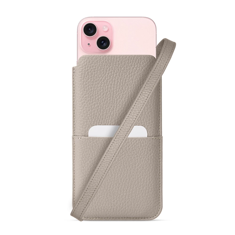 Lanyard Pouch - iPhone 15 Plus Light Taupe  - Pebbled Leather
