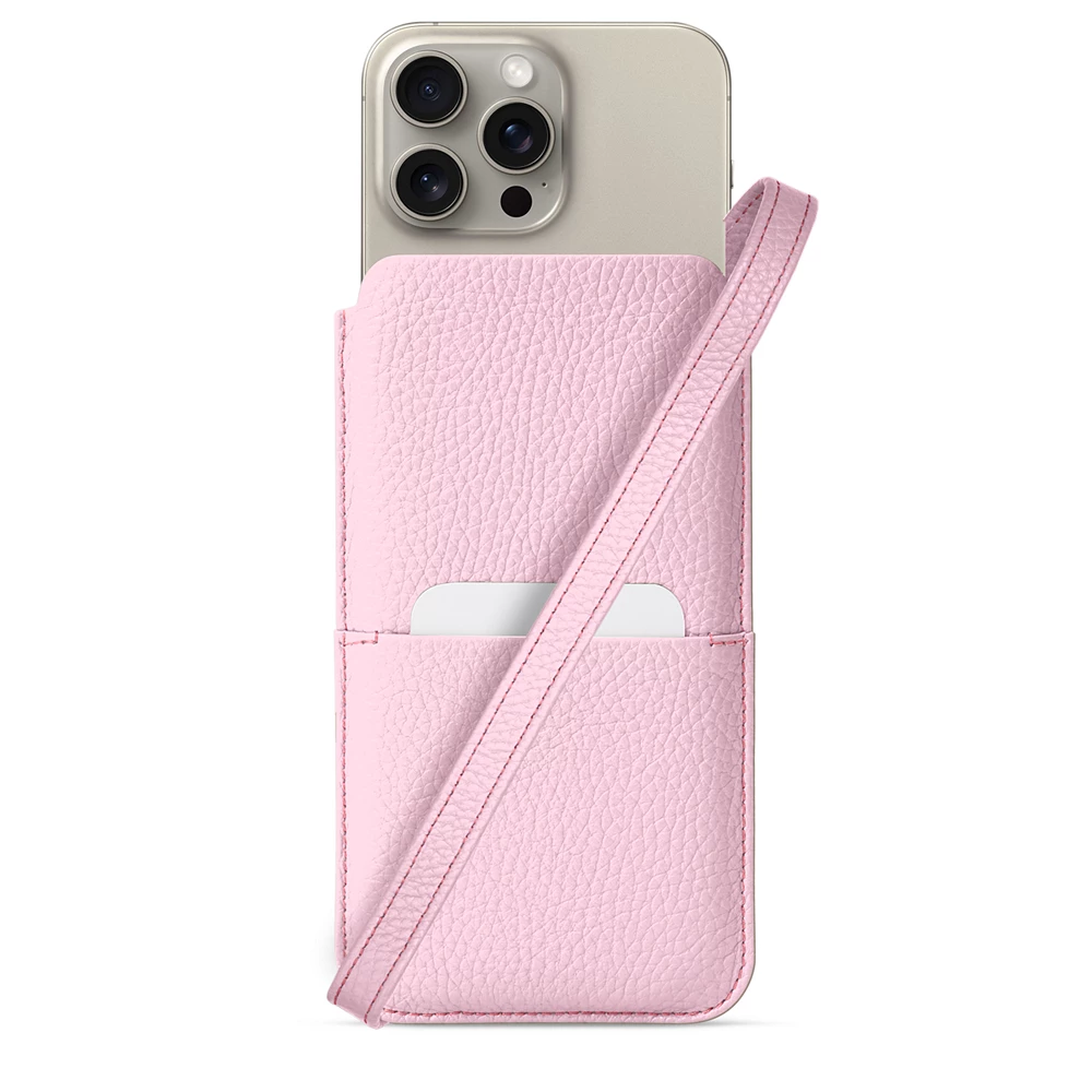 Lanyard Pouch - iPhone 15 Pro Max Pink  - Pebbled Leather