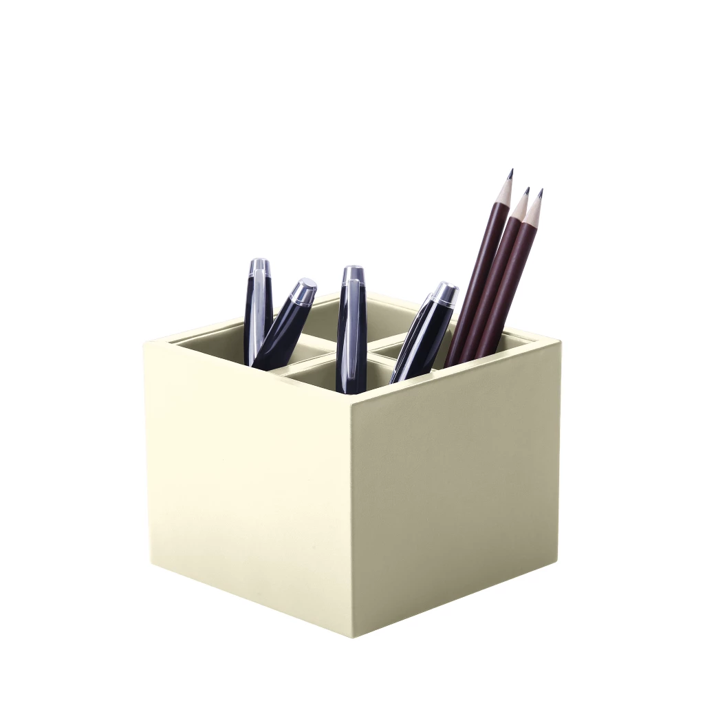 Large Pen Organiser - Square Off-White  - Smooth Leather