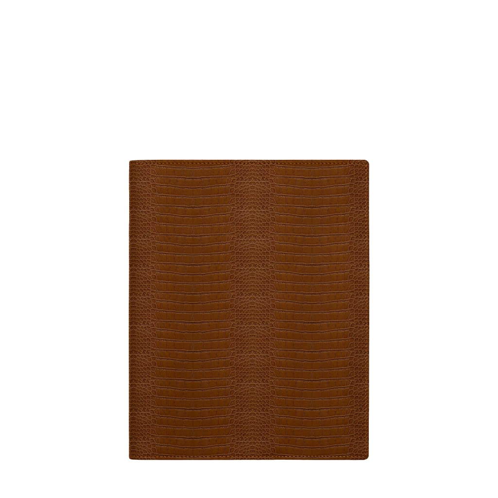 Made in authentic premium leather, this protective cover for A5-format notebook (of around 50 pages) is a beautifying and durable product. Beautifying, as it will turn your simple copybook into something much more classy. Durable, as it is conceived expertly by the finest leather craft artisans of Lucrin. The copybook is well held in place by two leather bands on each side in which you can slide in the hard cover of your notebook.