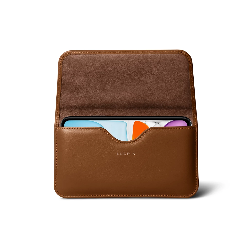 Perfect for those who usually move around and need their phone handy, the belt case for iPhone 11 is available in many leather types and colors. Designed in a semi-rigid way to protect your phone from unavoidable bumps and accidents, the custom iPhone 11 case has a premium microfibre interior that protects both the surface and screen of your iPhone. It is slim and easy to wear; you only need to slip the leather case through your belt via the two loops on the back. Before placing the phone in the IPhone 11 sleeve, make sure that the phone is not in any bumper or cover, that would modify the original dimensions of the phone. This iPhone 11 belt case can be customized with the engraving of your initials for example.
