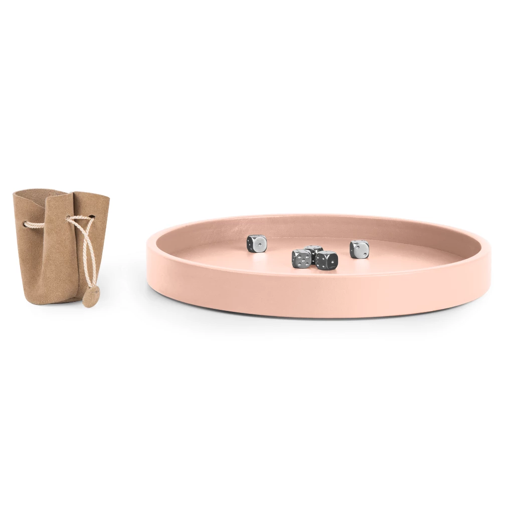 Dice games are widely popular given the range of games you can play with those - Backgammon, Bunco, Ludo, Bar Dice, Yahtzee, amongst others. This is why we are presenting a magnificent dice rolling tray to complement your games. It is basically a solid round wooden tray expertly covered in luxury leather. The leather dice tray comes with a complementary Suede calf leather drawstring pouch, containing five solid metal dice (Stainless Steel 316L). Great gift idea for the amateurs of table, board and parlour games. You may even engrave initials or maybe even the game name on the leather surface.