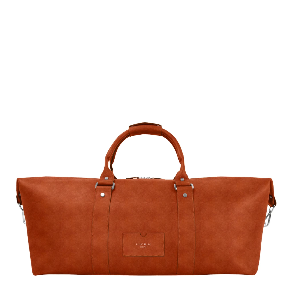 This large duffel bag with expandable sides, allows for extra packing space during your business trips or holidays. Besides its full-length zip opening, this elegant and subtle carryall has two interior side pockets with zip closure. You may of course personalize the travel bag to suit your taste and needs - thanks to the amazing choice of thread color and/or engraving options. The carabiners on the ends of the main opening makes this knapsack extensible and discreet snap buttons allow you to attach the handles for an easy carry.