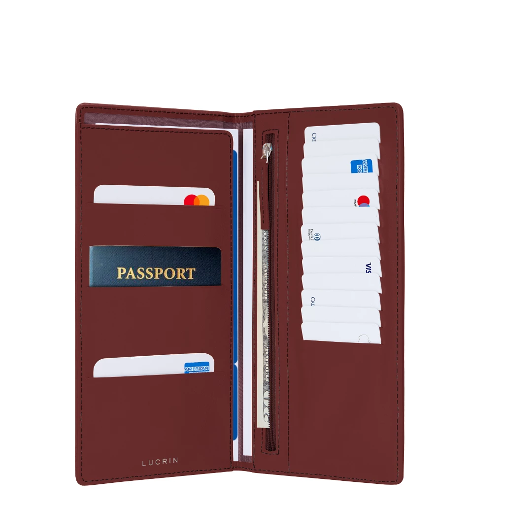 Discover the new trendy and ultra-practical travel accessory! Ideal for occasional and regular travellers, the Lucrin travel pouch allows you to carry all your travel essentials. The wallet can accommodate all your essentials, such as your credit cards (13 pockets), loyalty cards (3 pockets on the left), your passport and boarding pass as well as banknotes in the zipped pocket.