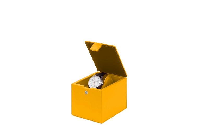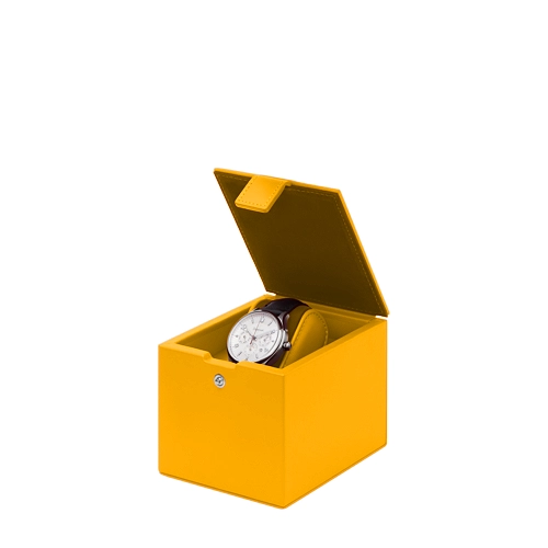 There’s clearly no better protection for your luxury watch than this leather box for 1 watch. Made in solid wood structure, covered expertly with authentic leather, this luxury watch box has a removable cushion inside for your most precious watch. It has a snap button closure for added security. This refined watch case can be customised with a beautiful engraving and is available in a fantastic array of colours.