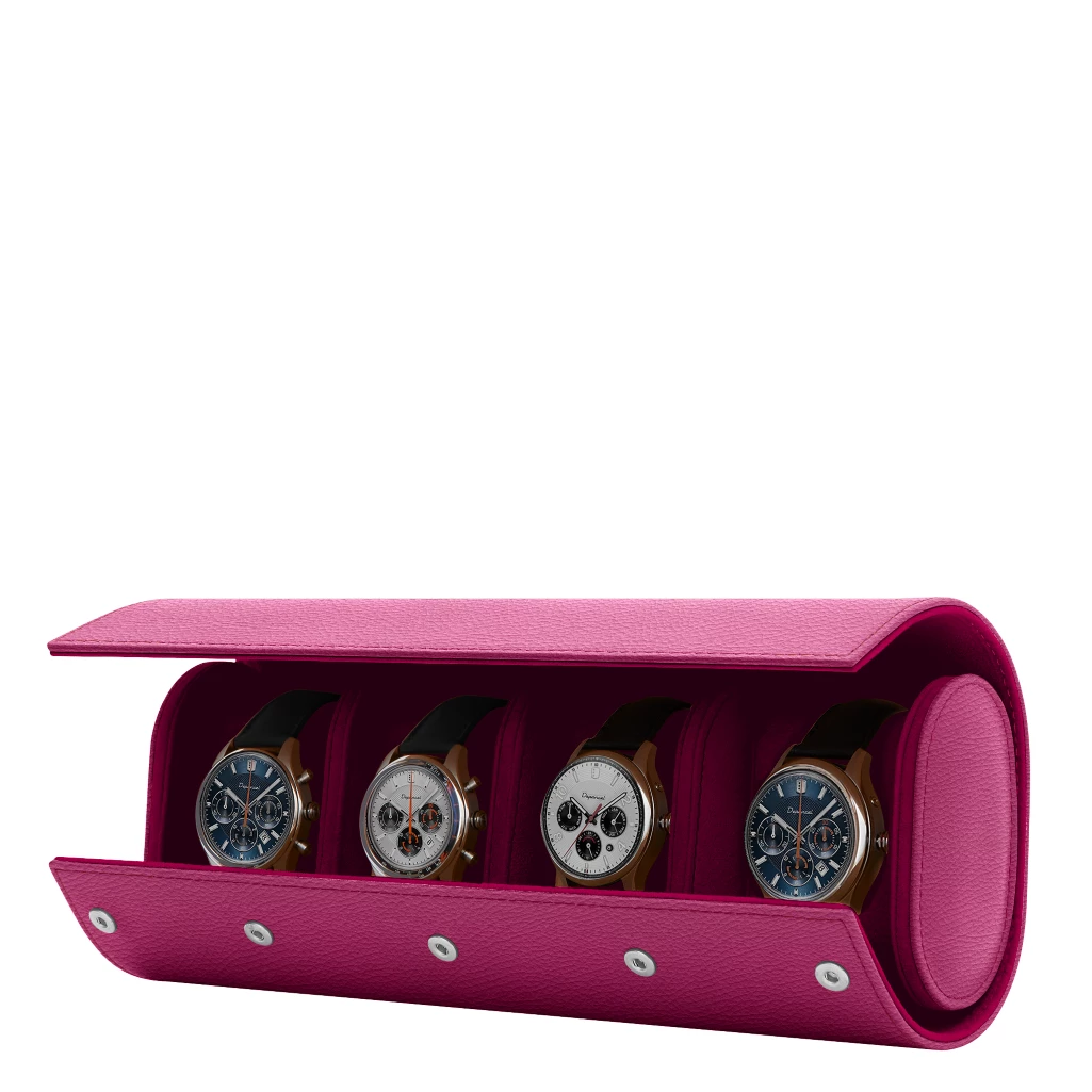 Watch Case for 4 Watches Fuchsia  - Pebbled Leather