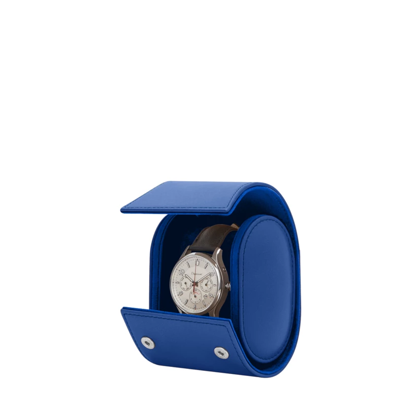 Here is a magnificent watch case made in soft leather to protect and carry your favourite watch, specially when you are on the move. Elaborated in a rigidified design, this watch holder has a velvety microfibre interior that keeps your watch as new. The small cushion inside (circumference 18 cm) can be removed completely from the watch roll for you to wrap your watch around before placing the whole lot back in the leather watch case holder. Take your pick among the various leathers, colours and customisation options to get one of the finest sumptuous watch cases for men. If you are looking for an original gift for watch lovers or collector, this watch organiser is the best choice.