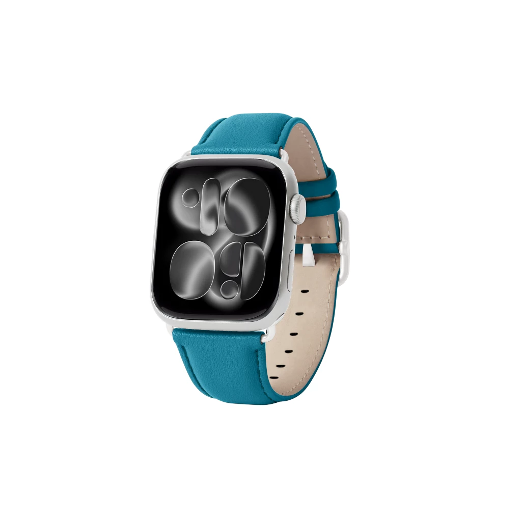 Apple Watch Leather Strap 46 mm with Pin Buckle - Silver Adapter Turquoise  - Smooth Leather