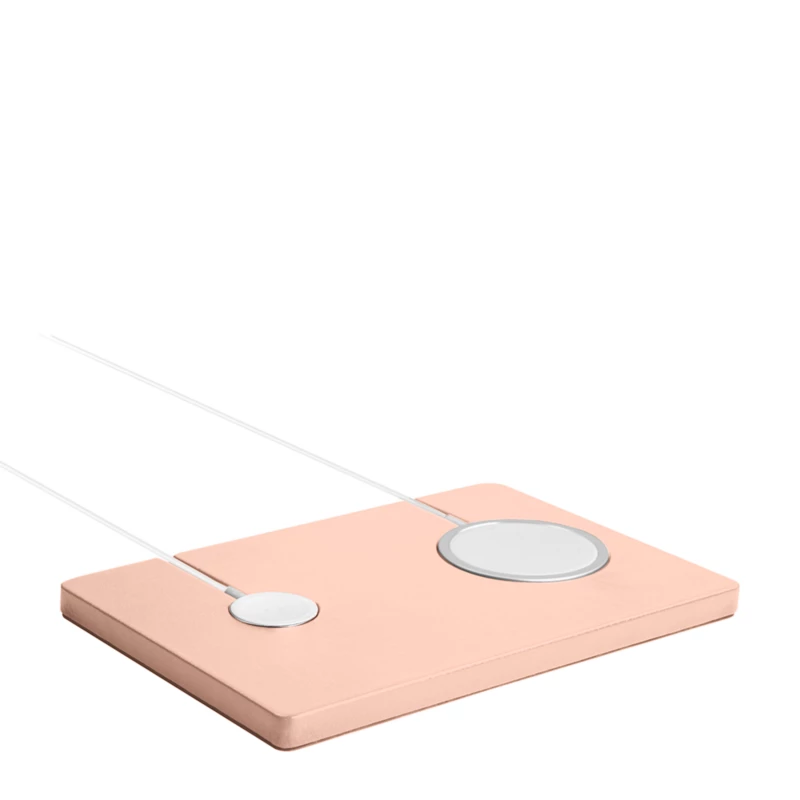 Power up your iPhone and Apple Watch more easily with LUCRIN’s Magsafe & Apple Watch Dual Charger Holder. The wooden base is sheathed with luxury leather to create a sturdy, functional and sophisticated structure. Put your wireless chargers and their cables in their designated slots to obtain an even surface for your Qi-certified devices to rest. The holes have been lined with micro-suction tape to keep the chargers in place. Customize your dual charger holder in a variety of colors to blend in your office or home aesthetic.