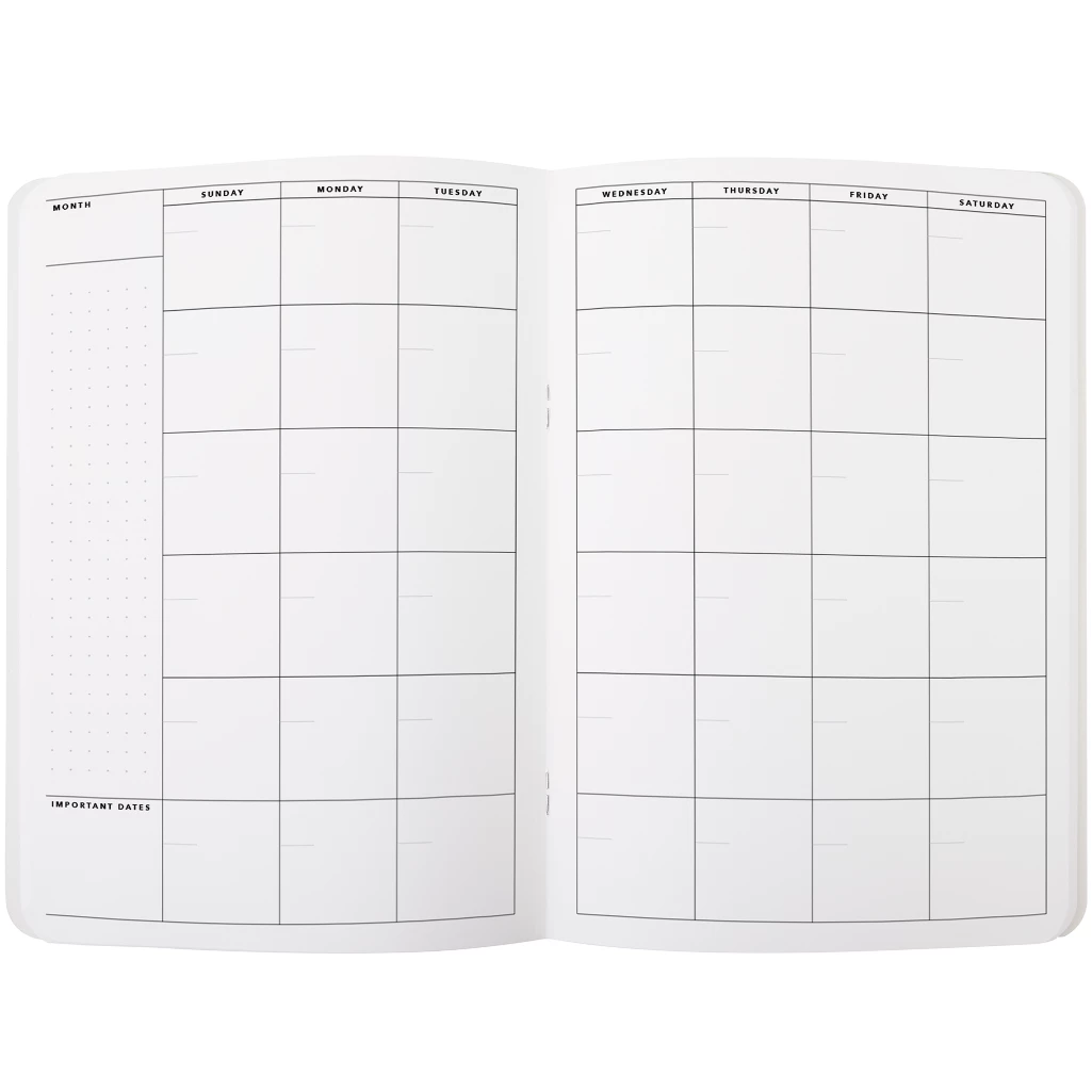 In B5 format, this monthly planner from the Alpine collection allows you to visualize your monthly projects at a glance. Its generous space is ideal for efficiently organizing your commitments and important events. Available in English only, it integrates seamlessly with your Alpine planner, featuring a practical and distinctive design. Moreover, just like our notebook and planner, you can select a second refill of the same size, in any format, to be delivered along with your first one for added convenience.
