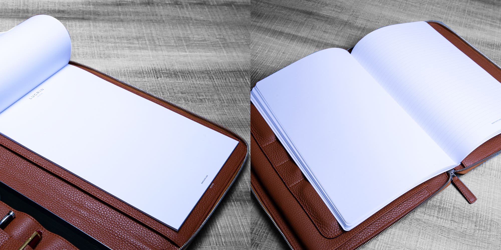 For those who love luxury products, Lucrin presents its sumptuous vegetable-tanned leather. The natural vegetable tanning involves the process of the hides with natural tannic acids in plants, without the use of harmful chemicals.