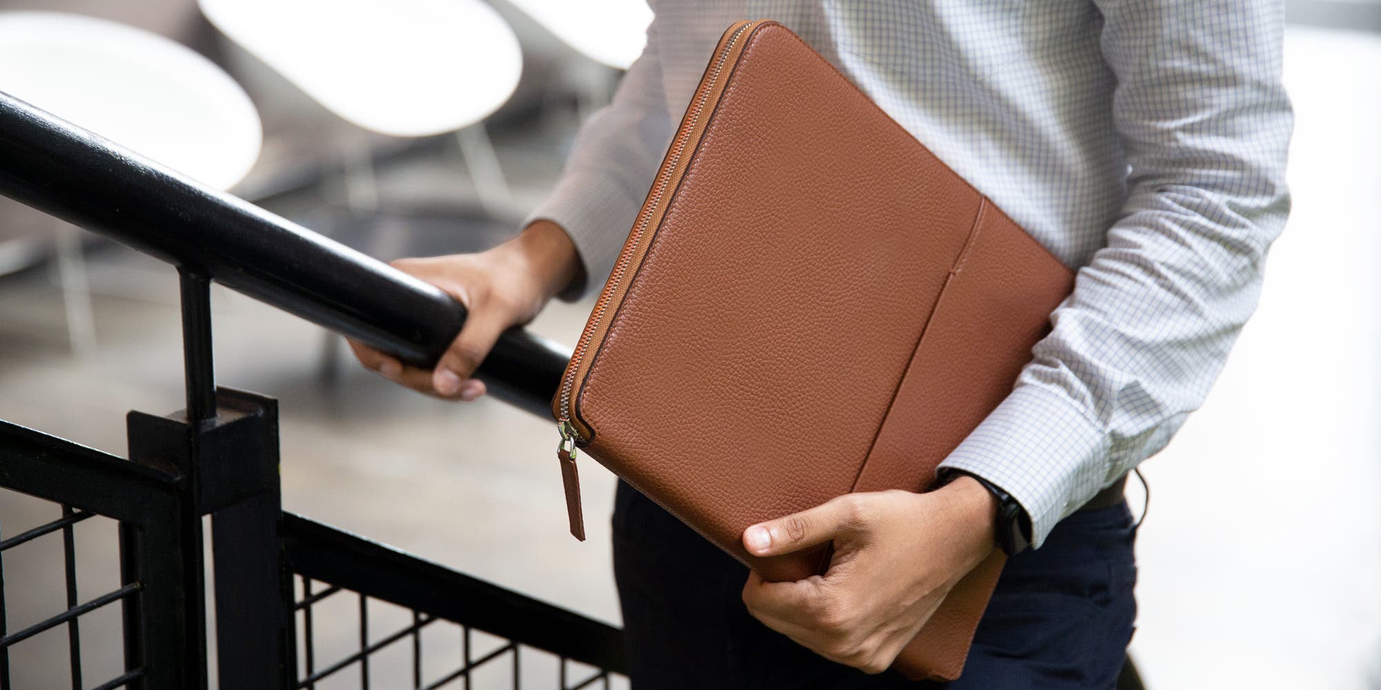 This is the luxury version amidst the various A4 compendiums and document holders that we propose. Made for the L5 Designer Collection in premium authentic leather, this sublime portfolio folder boasts of fantastic features, ideal to keep your work essentials safe and organised. This A4-format travel document holder comes with a very reliable YKK zip closure, which secures everything inside - great when you are travelling or on the move. The interior of this customizable leather document folder is designed with well-thought slots and pockets for your iPad, smartphone, earphones, pens, an A4 notepad and other documents.