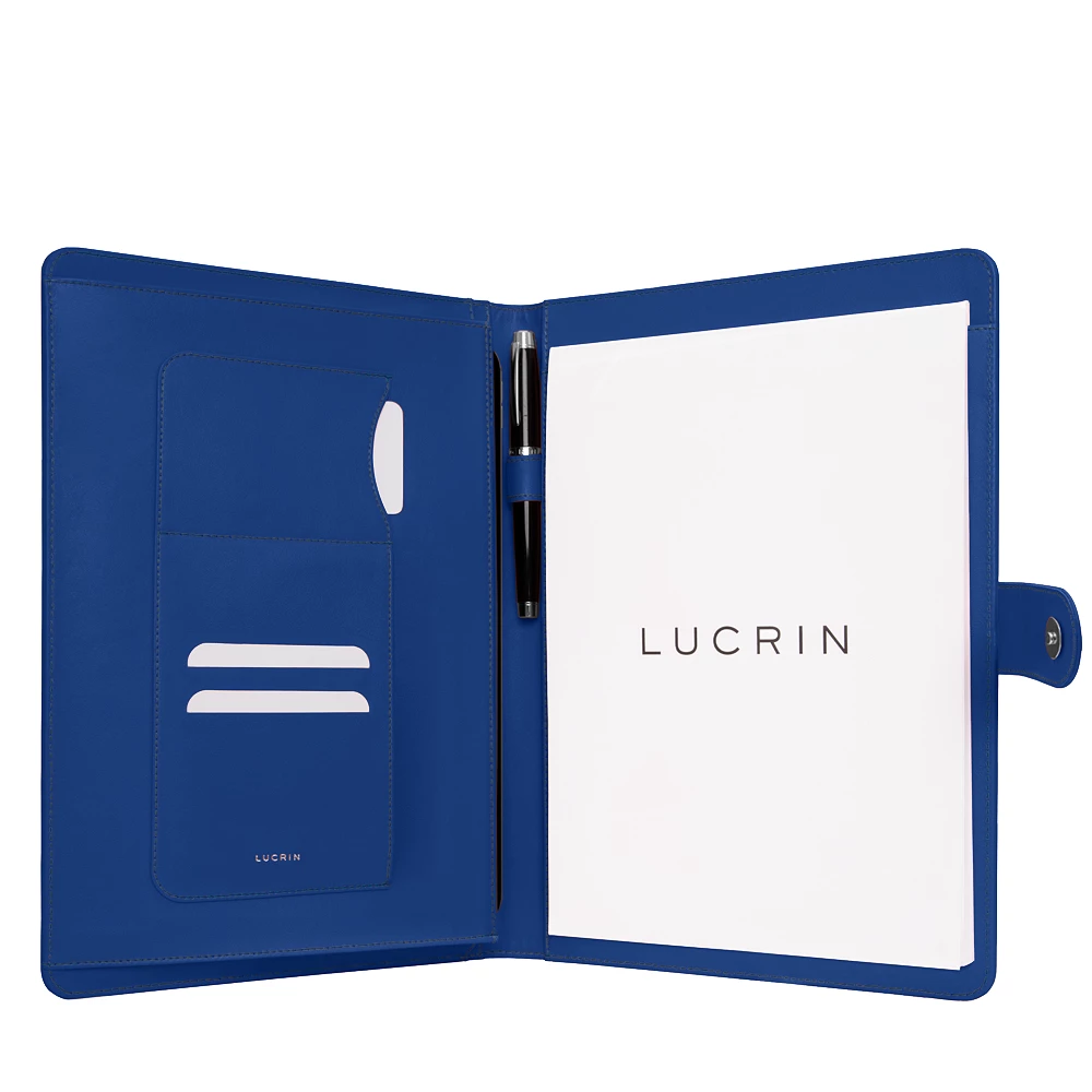 A4/US letter compendium with loop Royal Blue  - Smooth Leather