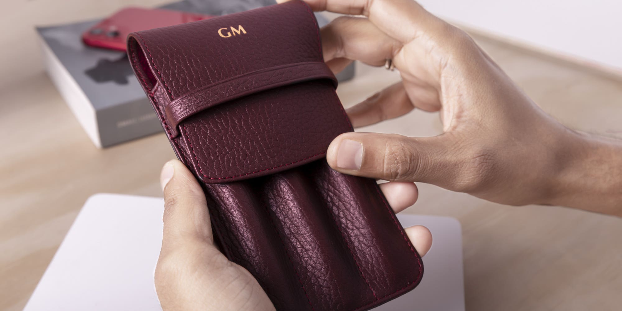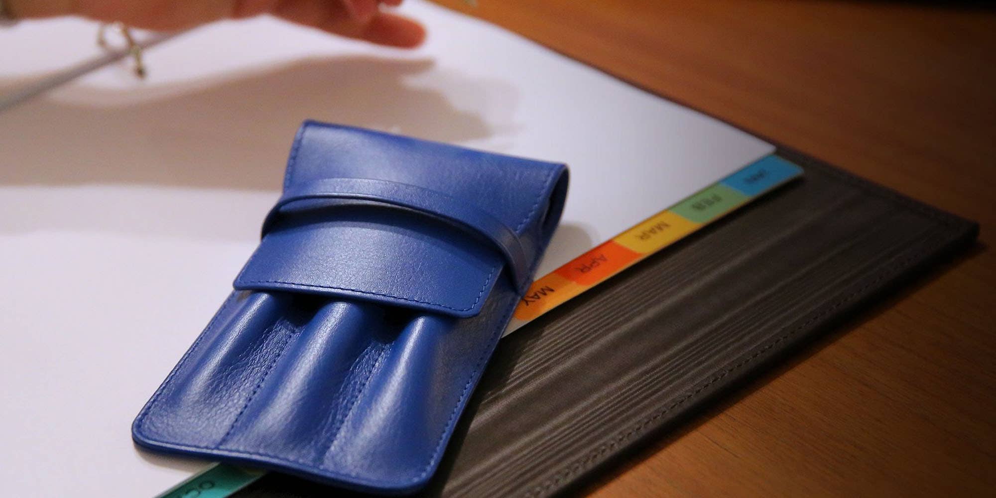 You have three pens that are precious enough to have their own protective sheath? This leather case for 3 pens is the perfect accessory that will not only protect your writing instruments but will also add some sure touch of class. Its design is elegant and practical enough, making the removal and insertion of the pens easy. The closure is a flap and loop system, which ensures that your pens are kept safely inside, cushioned by a high-end microfibre interior. This 3 pens leather holder is one of the best-sellers specially among fans and lover of beautiful pens such as Mont Blanc, Parker, Waterman,…