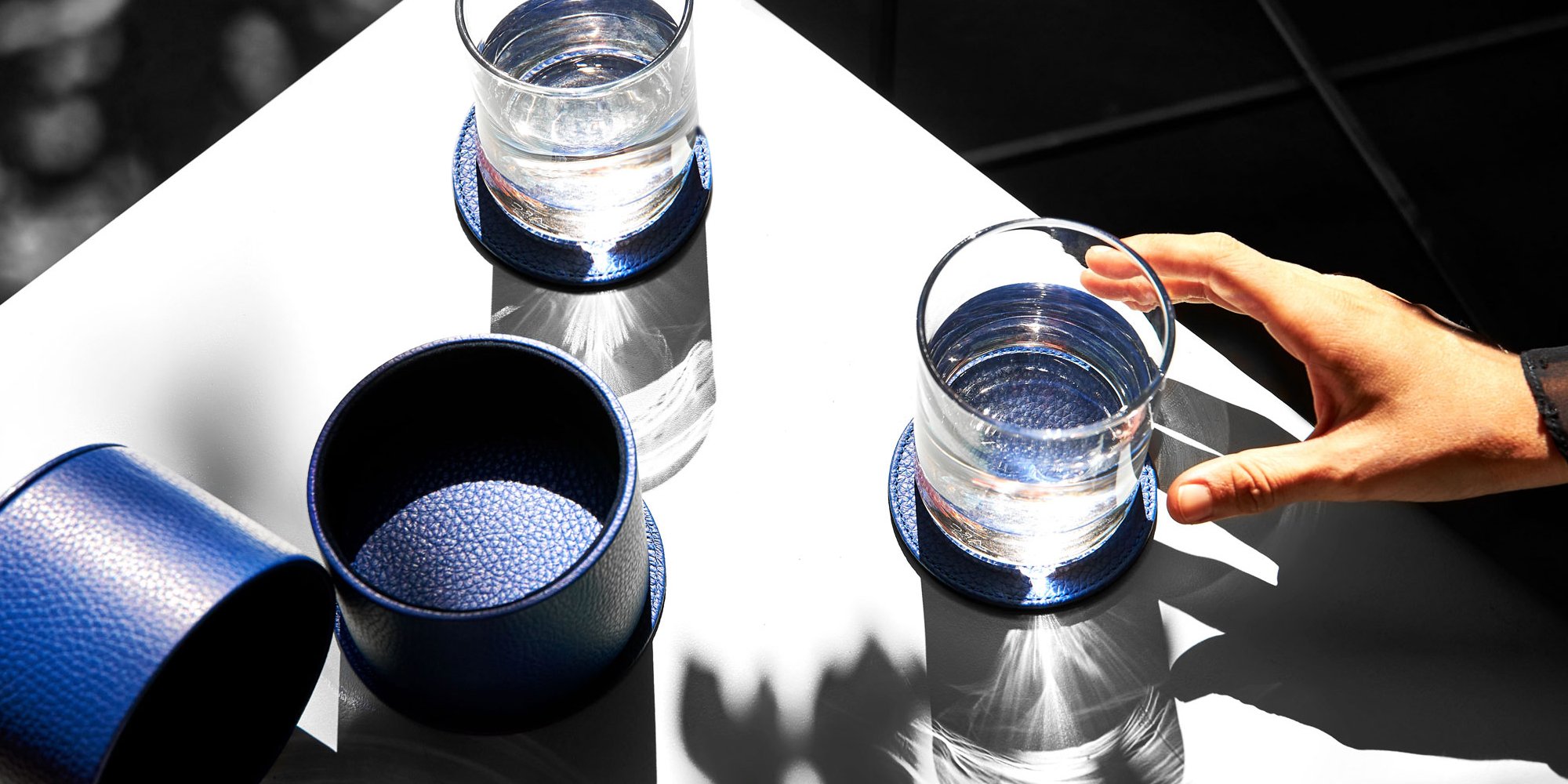Discover the selection of coasters & trays by Lucrin, made in authentic premium leather, and coming in two main shapes: round and square. Sold in two versions – set of 6 and set of 12 drink coasters – you can pick the one that suits you best. Those leather glass mats protect the surface of your table, with a definite touch of elegance and you can even match them with your interior decoration. Lucrin puts forward an unmatched palette of leather colors and you are sure to find the ones that suit your dining room color code best. Underneath the glasses coasters, there is high-end microfiber lining that ensures the safety of your table’s surface. Furthermore, you can customize those leather beverage coasters with initials, to then obtain a totally unique luxury set.