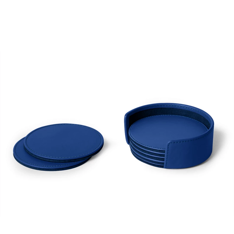 Welcome your guests with a touch of class and refinement by setting your dining or coffee table with these leather drink coasters. Designed to protect your surfaces from the usual rings left by glasses, this coasters set combines elegance and practicality. Each coaster is crafted in authentic premium leather on the outside and soft microfiber underneath, offering both durability and surface protection. Once your guests have left, simply store your drink coaster set in its matching rack, also handcrafted from the same high-end leather. This set of 6 luxury leather coasters fits beautifully into any home interior but is equally perfect for conference rooms or board meetings where drinks are served. Entirely handmade, these handcrafted coasters can also be customized to reflect your personal style. Add initials or a name to create personalized leather coasters—a sophisticated and functional accessory for any décor.