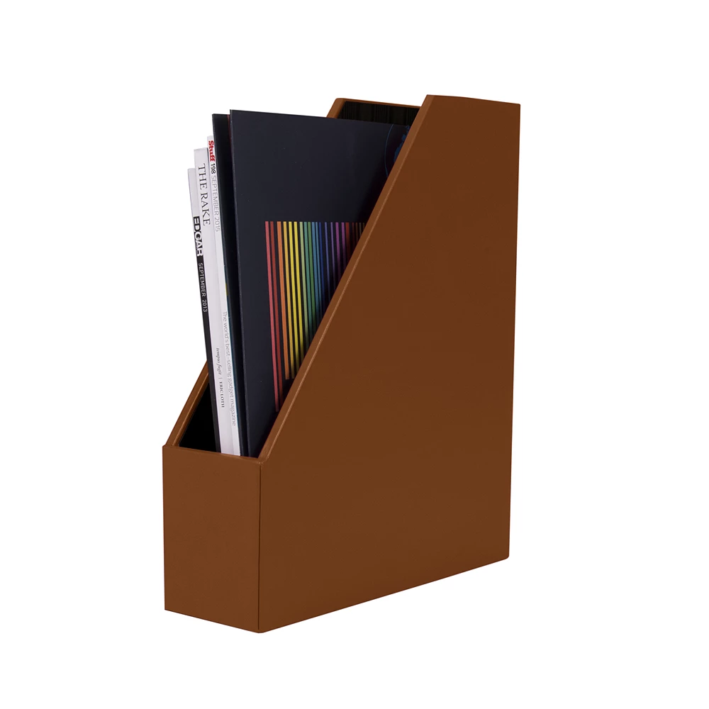 Go for this sublime magazines and papers rack - an absolute must for your office organisation and design. Made by our finest artisans, this magazine rack is basically a finely carved wooden box expertly covered in full grain leather. Practical and classy, you now have the perfect accessory to keep your magazines, newspapers, files and other documents at home or at the office.