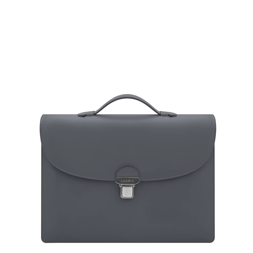 Designed for professionals who appreciate quiet confidence, this double gusset leather briefcase captures the essence of Swiss precision and timeless design. Crafted from smooth or pebbled full-grain leather, it balances durability with refined elegance. Inside, two generous compartments and carefully arranged pockets keep everything in place: documents, pens, phone, and even a 14-inch laptop. A flat zip pocket at the back and a flap with a press-lock closure add structure and security, while the top handle offers comfort with every move. Personalize every detail to make it yours: select the leather texture, choose your color, and add a discreet monogram beneath the flap. A LUCRIN leather briefcase crafted for those who value purpose, precision, and individuality. Personalize your LUCRIN double gusset leather briefcase today.
